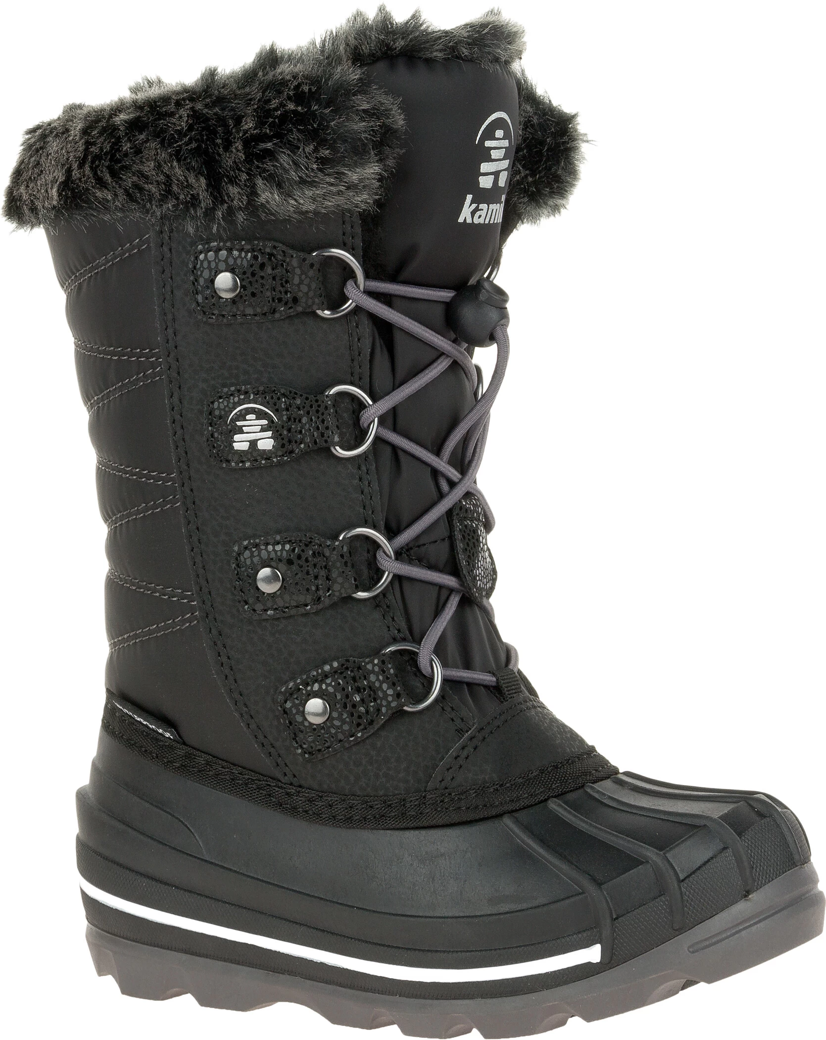 Met 3M Thinsulate isolatie en een waterafstotende bovenzijde met waterdichte naden zijn Kamik’s Frostylake winterlaarzen voorbereid op de “Brrr” temperaturen. Zelfs als het donker is, verhogen de reflecterende NiteRays-patches de zichtbaarheid. De sneeuwschoenen voor meisjes zijn voorzien van een Easy-Grab vetersluiting voor een pasvorm die de sneeuw buiten houdt.